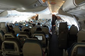 Poslední oddíl na horní palubě A380 Singapore Airlines je ekonomická třída. Na rozdíl od spodku (3-4-3) je zde rozsazení 2-4-2.