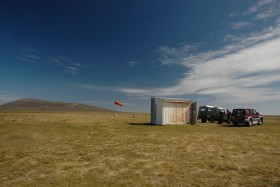 30.11. Nezvyčajne slnečný deň na pristávacej ploche ostrova Pebble Island pred príletom lietadla. Na ostrovoch vždy miestny farmár pred príletom lietadla vyvesí rukáv a pripojí za svoj offroad príves s hasiacim vybavením, a sedí v ňom až kým lietadlo neodletí. Po odlete príves znovu odpojí a zavrie v búde až do ďalšieho príletu.
