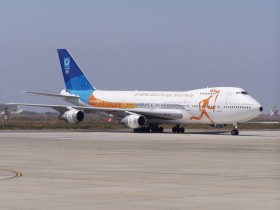 08.07.2004 - B747 with olympic torch after landing in Larnaca